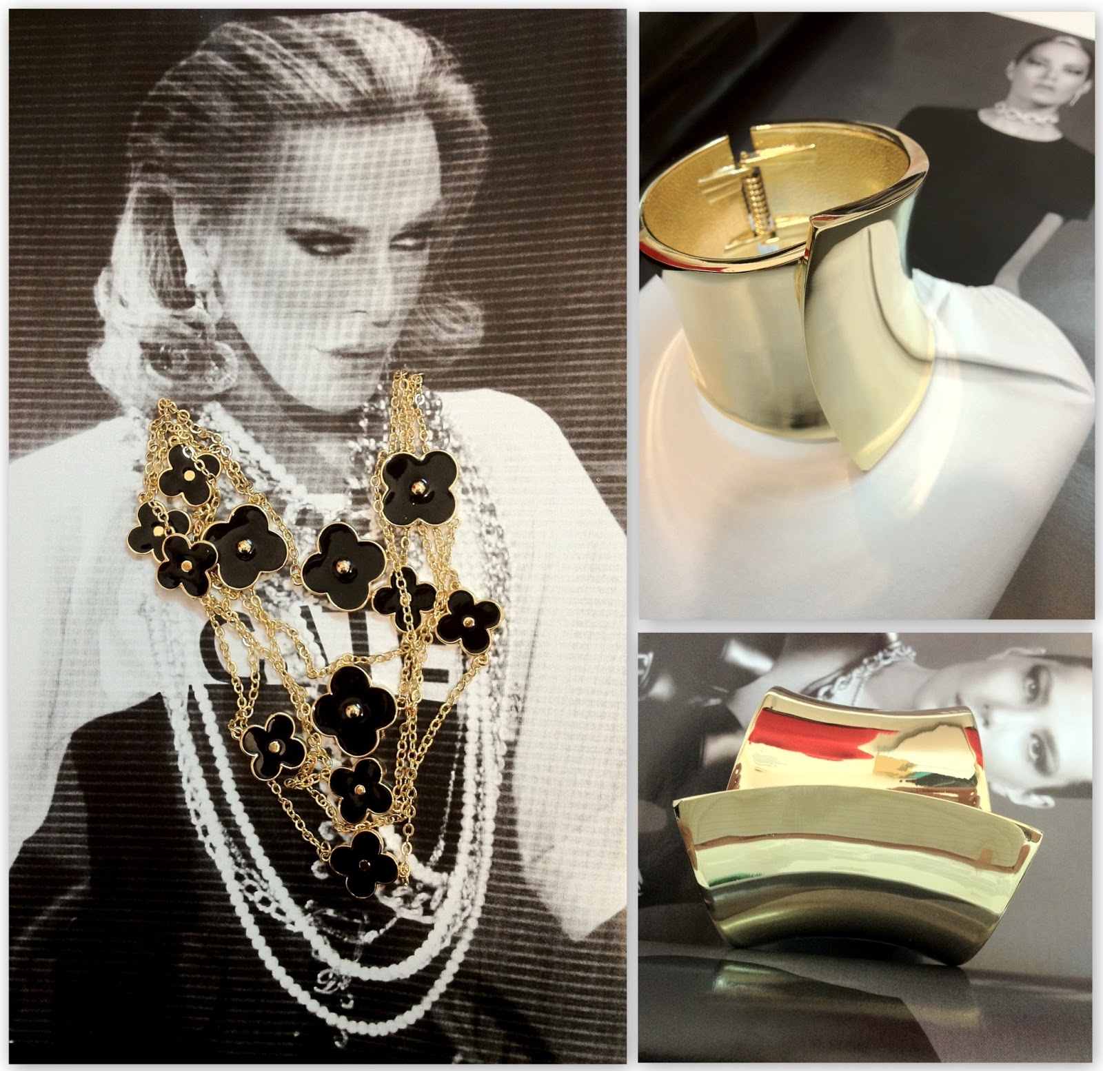 Вот не зря вчера так ярко целый день светило солнце! Кроме полученной посылки с блестящими украшениями ещё купила золотистые тени с такИИИм шиммером!!! Ну, сиять - так сиять!))) Необыкновенно порадовала находка цепочки с цветками - это пока так реализуется мечта о колье Alhambra от Van Cleef & Arpels. Настоящим обзаведусь обязательно, но чуточку позже))) В большую коробку с браслетами под золото пойдет и новый браслет-манжет, одним из весомых достоинств которого является идеальное облегание моего запястья)))Ну и два новых любимчика - металлические колье. Ну если со вторым всё более-менее понятно (думаю, что по паре таких есть у многих) , то вот первое - это просто творческая площадка. Какое-то время, конечно, поношу и так, ну а потом начнутся трансформации)))